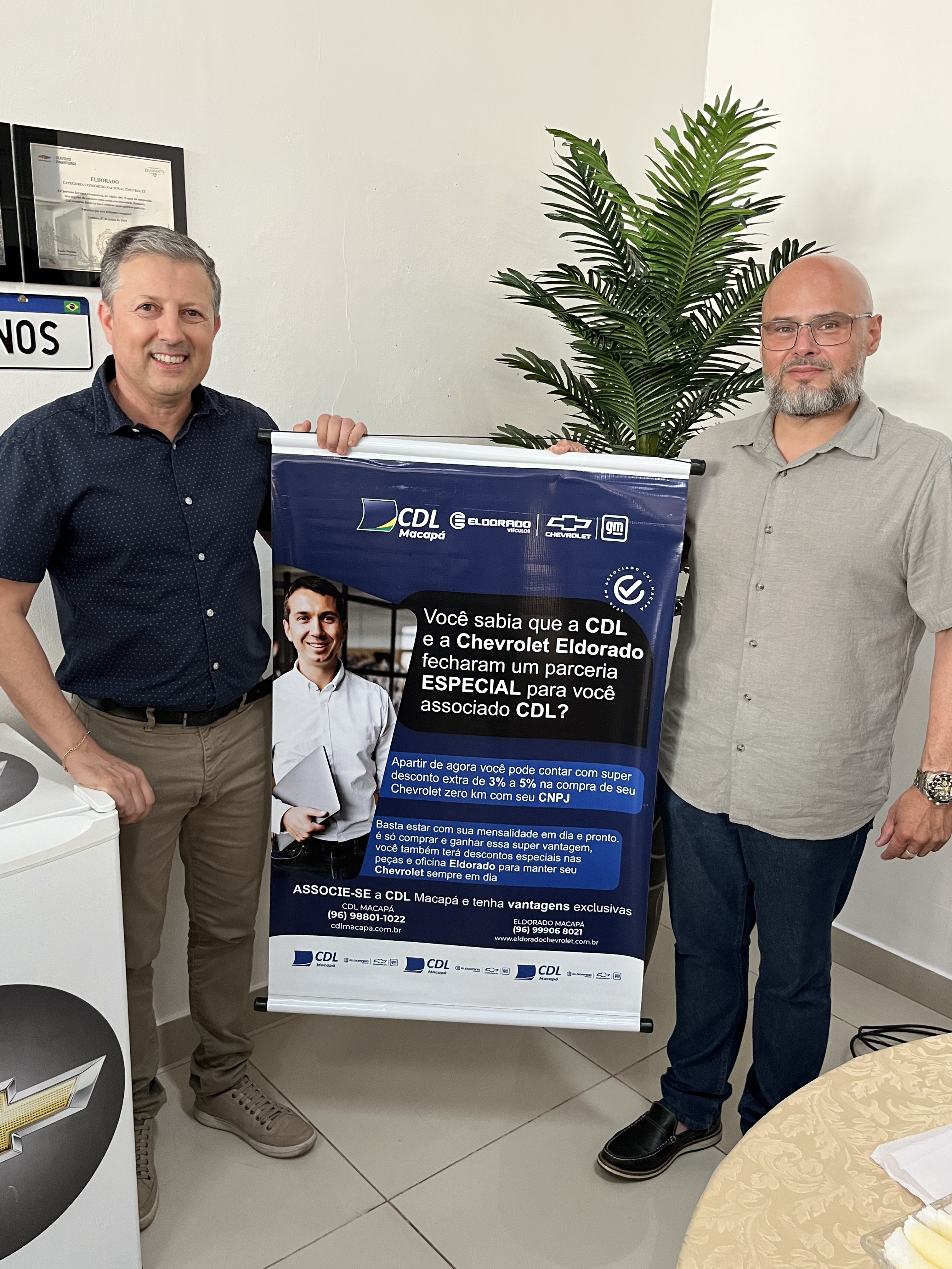 Na última segunda-feira (17), a Câmara de Dirigentes Lojistas de Macapá (CDL Macapá) e a Chevrolet Eldorado firmaram uma parceria com condições especiais para os associados da CDL. Estiveram presentes o Presidente Diretor, Márcio Góes, e a equipe que faz parte da instituição e o Diretor da Chevrolet Eldorado, Everton Pazini, e colaboradores que fazem parte da concessionária.