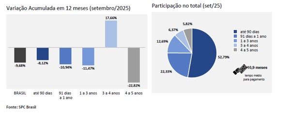 Um dado de atenção é o tempo médio decorrido entre o vencimento de uma dívida e o vencimento de demais pendências para os reincidentes: em setembro, esse período foi de 73,9 dias. Isso significa que, em média, após cerca de 2,5 meses do vencimento de uma dívida negativada, outra dívida já vence.