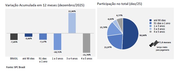 Um dado de atenção é o tempo médio decorrido entre o vencimento de uma dívida e o vencimento de demais pendências para os reincidentes: em dezembro, esse período foi de 70,7 dias. Isso significa que, em média, após cerca de 2,4 meses do vencimento de uma dívida negativada, outra dívida já vence.