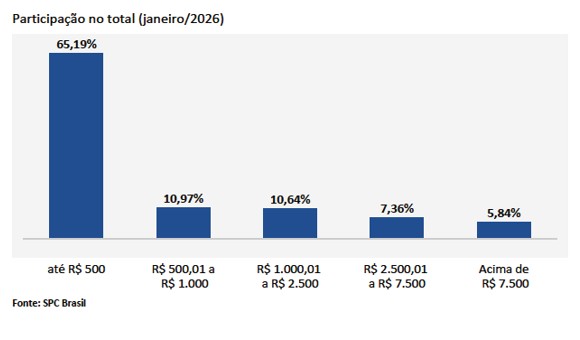 O valor médio pago por consumidor recuperado em janeiro de 2026 foi de R$ 1.954,03 na soma de todas as dívidas que tinha. Os dados ainda mostram que 65,19% pagaram até R$ 500 nas dívidas que possuíam.